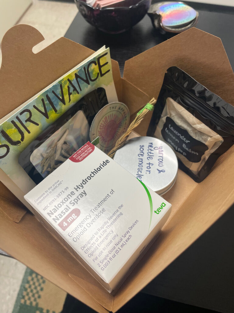Tiffany Pyette: My favorite part of this work is when someone who has been on the receiving end of our overdose response kits contacts me and says that they felt cared for and seen by it being culturally centered. They know someone mixed their teas with love, set the salves with intention, and tucked kind words and mini sweetgrass braids next to the naloxone, band-aids and fentanyl test strips.