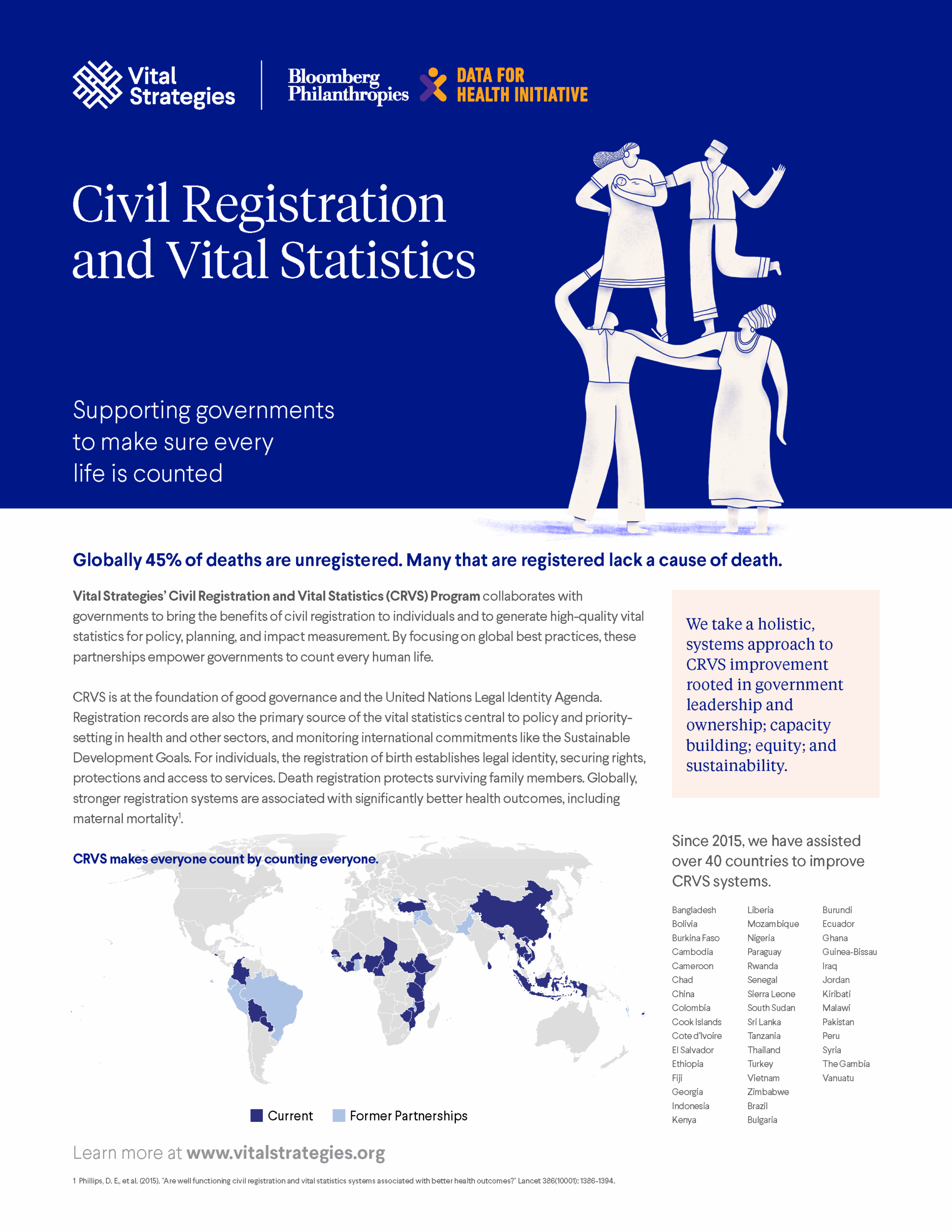 Vital Strategies’ Civil Registration and Vital Statistics (CRVS) Program collaborates with governments to count every human life and death and ensure high-quality cause of death data are available to policy makers.